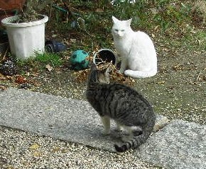 うちの猫たちの洗礼(威嚇、猫パンチなど)、野良のオスの威嚇攻撃をうけながらも