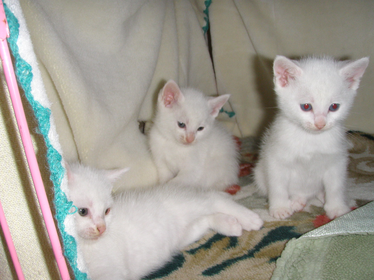 10月中旬頃の子猫達。白い子はどれが誰だかわかりません。。。。