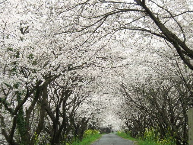 大垣市にある岐阜経済大学横の堤防から北へ続く桜並木