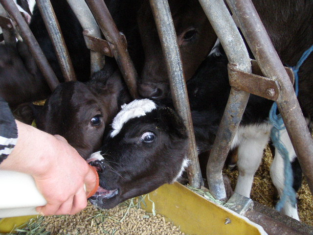 昨日産まれたばかりの子牛ちゃんもミルクをガンガン飲んでました